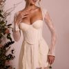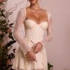 A premium design for elegant events, the lace detailing featured within the Ninette mini dress makes this style a stand out piece. Designed in our premium and elegant lace fabrication, the Ninette mini dress features our signature built in corsetry and underwired cups with a lightly pleated bust that enhances your shape and provides unrivaled support. The a-line skirt skims your curves and features a delicate lace overlay with pretty waterfall ruffle detailing whilst the single layer lace sleeves add an element of seduction to this enchanting style.