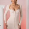 Cut from our premium stretch mesh fabric, Calista mini dress features hook and eye detailing down the front and full body ruching to cinch your waist and flatter your figure. Complete with a bust flattering sweetheart neckline and halter neck tie, Calista also features extra long ruched sleeves that finish just below the knuckle.Perfect for a romantic date night, we’re pairing our alluring mini dress with our Moment of Truth heeled mules and a chic mini clutch.
