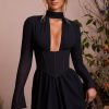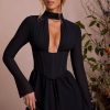 Made from our premium georgette fabric with a deluxe satin corset overlay, the Joelene mini dress is the long sleeve mini dress you’ve been waiting for. The long, flare sleeves and sophisticated high neckline and perfectly balanced with the seductive plunge neckline cut out and waist cinching, angled corset overlay that enhances your natural silhouette. Complete with an angled skirt that skims your thighs with a loose, a-line fit, the Joelene mini dress is a captivating style designed to create the most alluring silhouette.