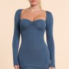 Long Sleeve Ruched Modal Cashmere Blend Mini Dress in French Navy
