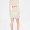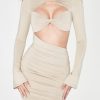 Long Sleeve Twist Neckline Cut Out Mini Dress in Beige