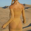 Mesh is the moment. Meet Santa Rosa, a mini dress made with a stretchy cut out bodysuit and mesh top layer. This off the shoulder style has an adjustable halterneck, jagged hems and a thigh high split with a self tie. Style it with a cool girl fedora, round shades and chunky lace up boots.