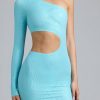 Doll-inspired looks with a signature twist. Delve into a world of fantasy festival styling with the Zanab mini dress, designed in our 20D stretch-mesh fabric with a gleaming metallic coating for a comfortable, sculpted look. Imagined in two nostalgic hues, it’s cut to a one-shoulder silhouette and spliced with a bold cut-out at the waist.