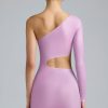 Doll-inspired looks with a signature twist. Delve into a world of fantasy festival styling with the Zanab mini dress, designed in our 20D stretch-mesh fabric with a gleaming metallic coating for a comfortable, sculpted look. Imagined in two nostalgic hues, it’s cut to a one-shoulder silhouette and spliced with a bold cut-out at the waist.