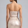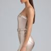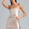 Experimental separates designed for maximum impact. Channel nostalgia at your next all-day event with the Simone mini dress, inspired by statement silhouettes from the noughties. Available in two gleaming hues, it’s crafted from our metallic stretch denim to a strapless silhouette adorned with shaping seams and belt detailing at the neckline and waist.