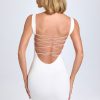 Channel laid-back glamour with the Aoife mini dress. Ideal for day-to-night styling, it’s crafted from our buttery soft jersey fabric made with TENCEL™ Modal fibres, derived from controlled or certified wood sources. It’s cut to a figure-hugging bodycon fit, framed with a picot lace-trimmed square neckline and a low-open back anchored with signature lace-up detailing.