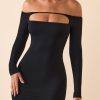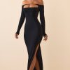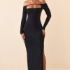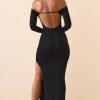 Elevated details for maximum impact. Designed to be dressed up, the Georgie maxi dress is cut to a sleek column silhouette with off-shoulder sleeves and a curved cut-out at the neckline. It features a statement low open back, a thigh-high side split and is crafted from our endlessly soft and stretchy premium jersey made with TENCEL™ Modal fibres, derived from controlled or certified wood sources.