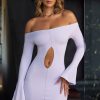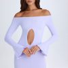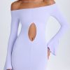 Off-Shoulder Cut-Out Mini Dress in Soft Lilac