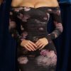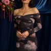 Off-Shoulder Ruched Mini Dress in Black Floral Print