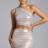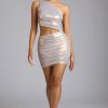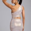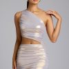 One Shoulder Metallic Jersey Mini Dress in Light Gold