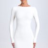 Buttery soft staples. A style you’ll turn to time and time again, the Lyla mini dress is crafted from our signature jersey fabric made with TENCEL™ Modal fibres that are naturally soft and smooth to the touch. It’s crafted to a classic bodycon silhouette with a boat neck, long fitted sleeves and an open back that provides a statement finish.