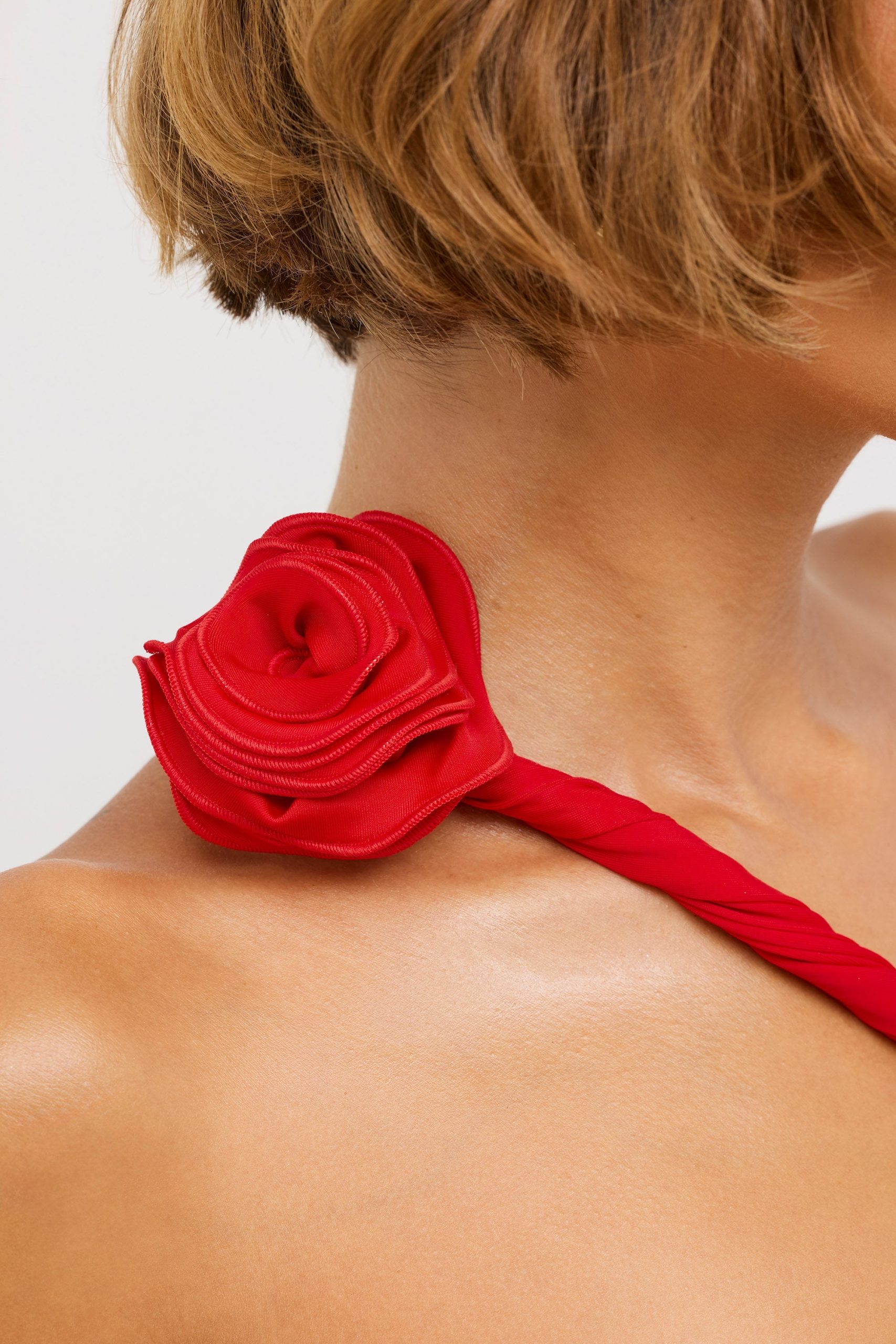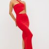 Featuring a chic, twisted asymmetric neckline with floral detailing, the Kalina maxi dress has a classic bodycon