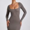 Master year-round styling with the Sherine mini dress. Crafted from soft and breathable stretch-ribbed fabric made with TENCEL™ Modal fibres derived from controlled or certified wood sources – it’s cut to a bodycon silhouette that accentuates your natural curves. It’s framed with a bust-flattering square neckline and long fitted sleeves.