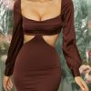 With bust flattering ruched detailing and figure enhancing cut outs, our satin mini dress will have you stealing stares from every angle. Designed in a smooth satin fabric that contours your figure, Hold Me Closer also features long voluminous sleeves with chic cuffs for an elegant date night silhouette. Pair with strappy sandals and a mini bag for the ultimate finishing touches.