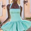 Perfect for al fresco brunch dates and rooftop dinners, the Maybelle mini dress is a style you’ll want in your summer rotation. Cut to a timeless halterneck silhouette, it’s crafted from lightweight stretch-cotton poplin that moulds to your figure and features an elasticated smocked panel at the back for enhanced comfort. It’s complete with perfectly placed ruching at the bust and waist, and a voluminous double-layer skirt.