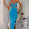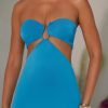 Summertime evenings call for the Juniper maxi dress. Cut to a dramatic floor length in our slinky jersey fabric, Juniper is complete with statement cut-outs, metal hardware detailing and a sexy bandeau neckline.