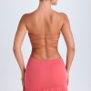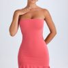 Ruffle-Trim Cut-Out Bandeau Mini Dress in Coral