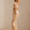 Glittering evenings with Isabel. Designed in our sequin embellished, dual lined power mesh fabric and ready to elevate your summer evening plans. The Isabel maxi dress features a sleek asymmetric neckline, statement cut-out detailing at the waist and a raw edge hem.
