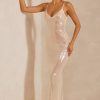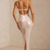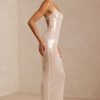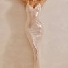 Glamorous evenings in Marlena. Created from our premium power mesh fabric with a flat sequin, raw edge hem overlay, Marlena was designed to elevate your eventwear options. Cut to a dramatic gown length, this glossy maxi dress features a bust-flattering v-neckline, cut-out detailing, a sultry low back and a narrow split on reverse that allows for effortless movement.