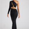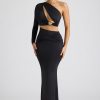 Sleek and sexy, the Estela maxi dress is designed to make hearts race. Cut from our premium jersey – the slinky fabric is soft, stretchy and sculpting – Estela showcases curve-enhancing draped details at the hips and statement cut-outs at the bust and waist. Complete with heart-shaped metal hardware, the gorgeous one-shoulder style is sure to dazzle on date night.