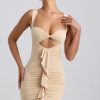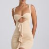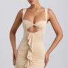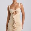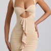 Premium silhouettes amplified with unique details. Made for those who like to turn heads, the Zivanka mini dress is cut from our premium slinky jersey fabric enhanced with ruching and a waterfall ruffle trim that draws the eye to the waist, creating a cinched, hourglass silhouette. Framed with a V-shaped hem and sweetheart neckline, it’s finished with twisted detailing at the bust.