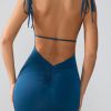 Slinky Jersey Open Back Mini Dress in Midnight Blue