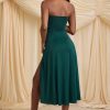 Slinky Jersey Strapless A-Line Midaxi Dress in Emerald Green