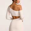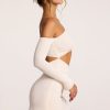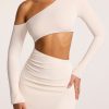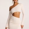 Textured Jersey Asymmetric Cut Out Mini Dress in Ivory