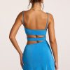 Skin-baring silhouettes. Created from a lightweight textured jersey fabric that’s form-accentuating and stretchy, the Azzurra mini dress is a statement evening design with distinctive cut-outs at the waist. Complete with a floaty thigh-skimming mini skirt and delicate adjustable shoulder straps.