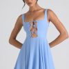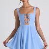 Designed with spontaneous daytime plans in mind: think al fresco lunch dates or brunch with the girls. Crafted from lightweight georgette that perfectly enhances your curves, the Nanisca micro mini dress is cut to a sweet A-line silhouette with cut-out detailing and adjustable ties at the bodice. It’s completed with a gathered tulle underlay at the hem.
