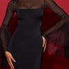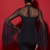 Channel the allure of the season with the Wendy mini dress. Designed with drama in mind, it’s framed with oversized, semi-sheer mesh waterfall sleeves for dynamic movement with every step. Designed to a figure-hugging silhouette from premium, high-shine stretch jersey, it’s framed with a semi-sheer high mock neck.