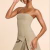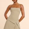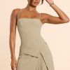 New silhouettes for the new season. Perfect for transitional styling, the Bruna mini dress is an effortless day-to-night staple that balances aesthetic with functionality. Designed in our woven twill suiting and featuring a detachable overskirt that wraps at the hips, Bruna is complete with a straight neckline and pleated mini skirt.