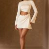 Asymmetric Cut-Out A-Line Mini Dress in Ivory