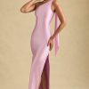 Deserving of a standing ovation, the Sheril maxi dress is designed for your most memorable occasions. It’s crafted to an asymmetric one-shoulder silhouette from premium, high-shine satin jersey that’s designed to hug every curve and create a liquid-like effect. It’s framed with an attached matching neck scarf and is cut to a classic column silhouette with a side split.