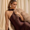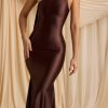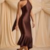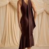 Asymmetric Scarf-Detail Midaxi Dress in Chocolate Brown