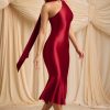Be the best-dressed this holiday season with our Shaya midaxi dress, rendered in two classic hues. It’s crafted to an asymmetric one-shoulder silhouette from premium, high-shine stretch jersey that’s designed to hug your curves beautifully. It features a godet-pleated fishtail hem and an attached matching neck scarf for multiple styling options.