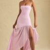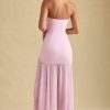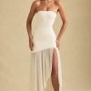 Glamour in every step. Guaranteed to turn heads, the Melina maxi dress is crafted from premium chiffon with a figure-hugging strapless bodice and sheer asymmetric skirt. It’s elevated with contouring seams at the front and back, cut to a universally flattering fishtail silhouette, and complete with a thigh-high front split.