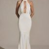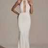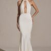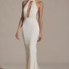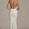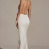Designed for grand entrances, the Desiree gown is cut to a head-turning fishtail silhouette with a plunging neckline and a curved open back. Rendered in two timeless hues, it’s made from premium lightweight slinky satin that moulds to your figure and falls to a floor-skimming fishtail skirt, complete with shaping seams.
