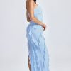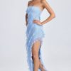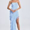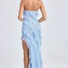 Bandeau Ruffle-Trim Maxi Dress in Powder Blue