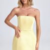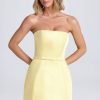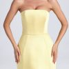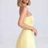Classic minimalism with a structured twist. Modelled on timeless styles, the Haisley mini dress is cut from recycled heavyweight satin to a shapely A-line silhouette that sculpts the waist and flares out at the hips. It features a built-in corset for enhanced shaping and support, as well as contouring seams that create an hourglass look.