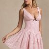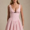 Feminine shape and romantic details, ready for spring days. Crafted from lightweight stretch georgette, the Sabina mini dress is cut to a universally flattering A-line silhouette with a fitted bodice and voluminous skirt underlaid with tulle. It’s framed with a V-shaped waist, scalloped plunge neckline and bow detailing at the front. It’s complete with adjustable straps and a shirred elasticated panel at the back for a comfortable fit.