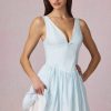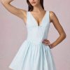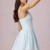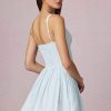 Bow-Detail A-Line Mini Dress in Powder Blue Stripe