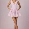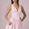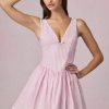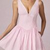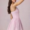 Bow-Detail A-Line Mini Dress in Soft Mauve Stripe