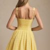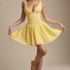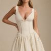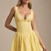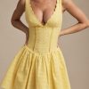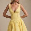 Feminine shape and romantic details, ready for spring days. Crafted from lightweight cotton broderie anglaise, the Sabina mini dress is cut to a universally flattering A-line silhouette with a fitted bodice and voluminous skirt. It’s framed with a V-shaped waist, scalloped plunge neckline and bow detailing at the front. It’s complete with adjustable straps and a shirred elasticated panel at the back for a comfortable fit.