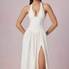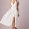 A modern classic. Crafted from premium broderie anglaise stretch cotton with a soft modal jersey lining, the Farrah midaxi dress is designed with a fitted V-shaped bodice and A-line skirt. It’s framed with a plunging halterneck, open back and thigh-high side split for stunning movement with every step.