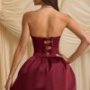 Looking for the ultimate party season dress? Meet Gloriana. This versatile design instantly converts from a chic midaxi length to a stunning mini, thanks to discreet internal poppers at the waist, meaning you can switch up your look in seconds. It’s crafted from premium, non-stretch bonded satin with a built-in corset bodice for enhanced shaping and a voluminous bubble hem. It’s complete with a V-shaped open back, anchored with pretty bow embellishments.