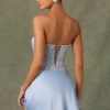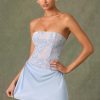 Embellished Draped Strapless A-Line Mini Dress in Sky Blue