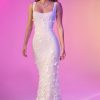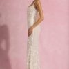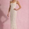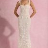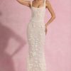 - All-over custom floral appliqués and sequin embellishment