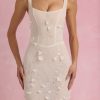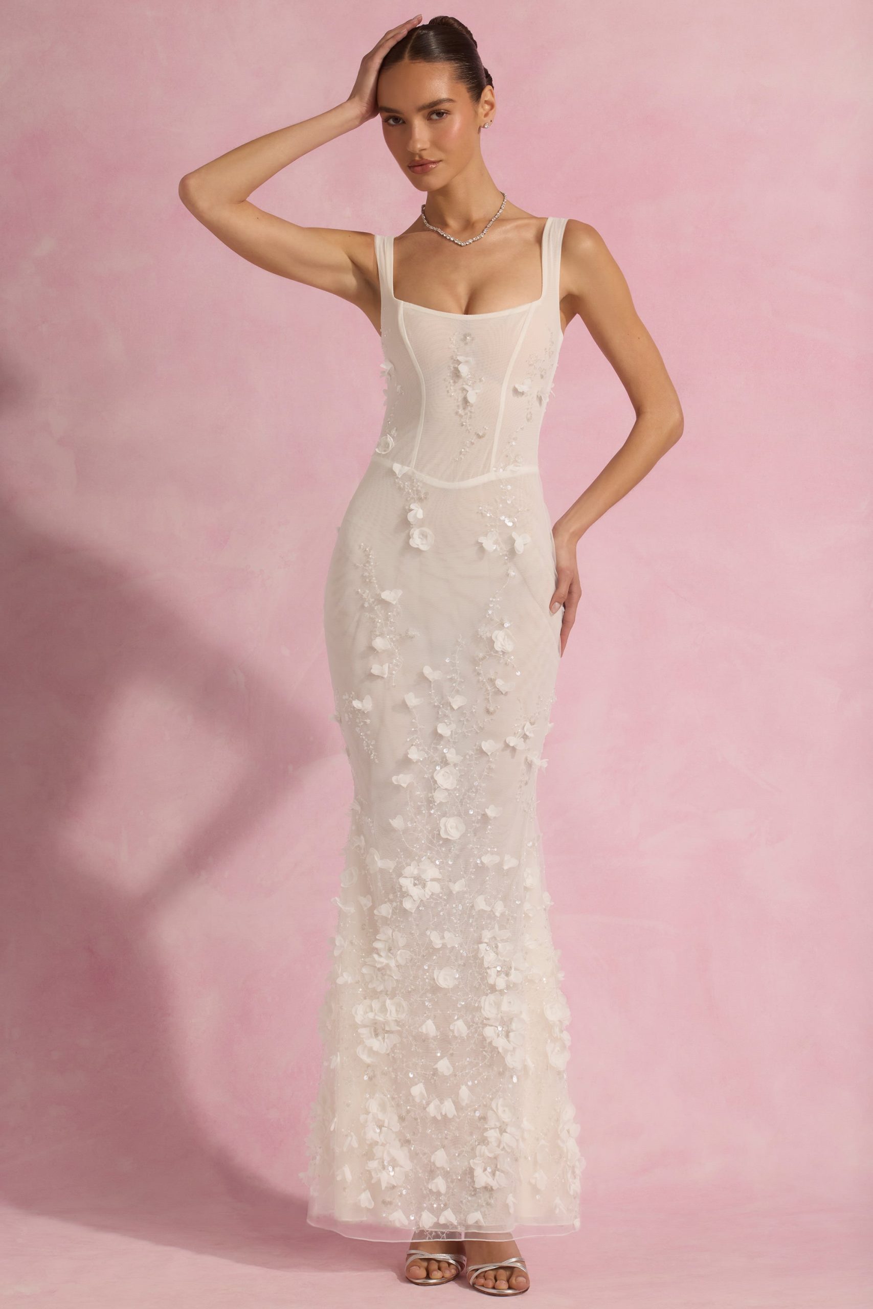 Wearable works of art for your most special occasions, the Vasanta gown is adorned with delicate tonal floral appliqués brought to life with perfectly placed sequin embellishments. It’s crafted from lightweight, semi-sheer premium mesh that hugs your curves and is lined with signature power mesh for a non-restrictive sculpting effect. It’s cut to a classic fishtail silhouette with lace-up detailing at the back and adjustable straps for your perfect level of support.