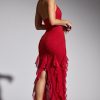 A perfect balance of sultry and feminine, the Anley maxi dress is timeless. Designed in our premium 20D mesh fabric, Anley features all-over bead and crystal embellishment, a plunging halter neckline, and frill detailing from the hips to hemline.